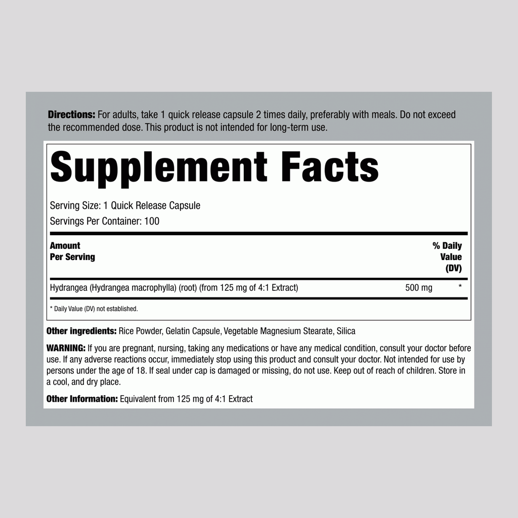 Hydrangea Root, 1000 mg (per serving), 100 Quick Release Capsules