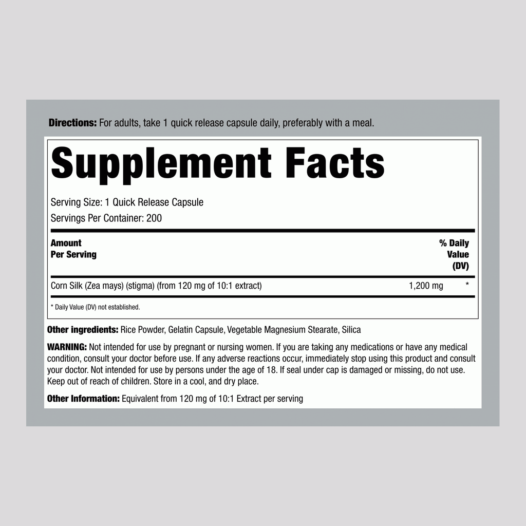 Corn Silk, 1200 mg, 200 Quick Release Capsules