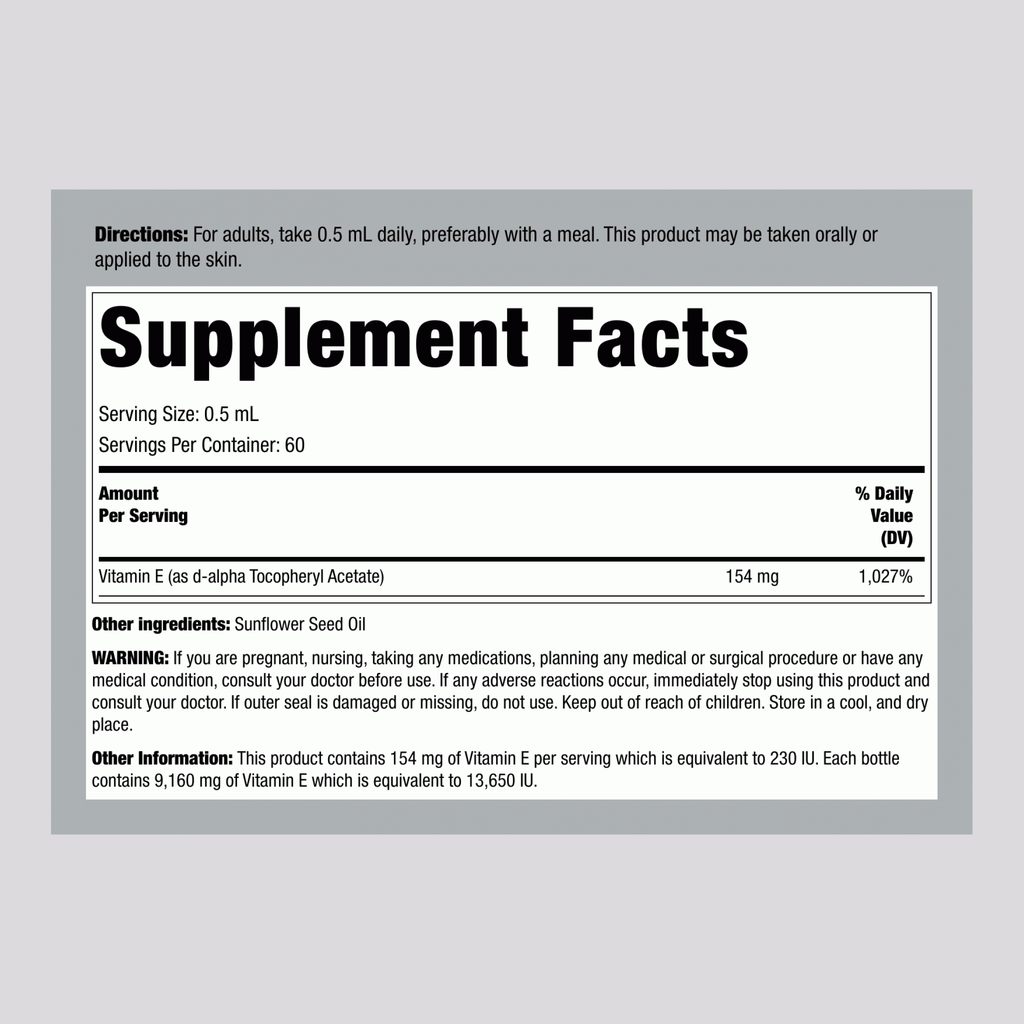 100% Natural Vitamin E-Oil, 13,800 IU, 1 fl oz (30 mL) Dropper Bottle