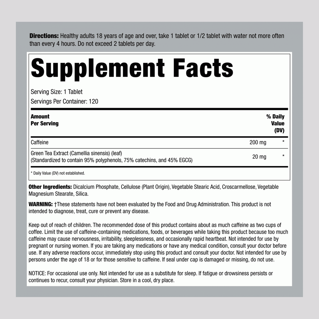 Caffeine 200 mg with Green Tea Extract, 120 Tablets