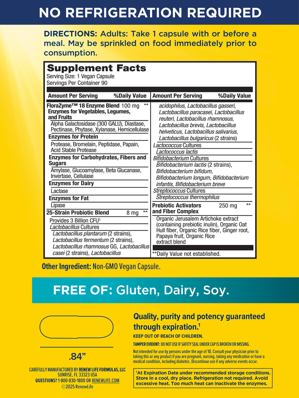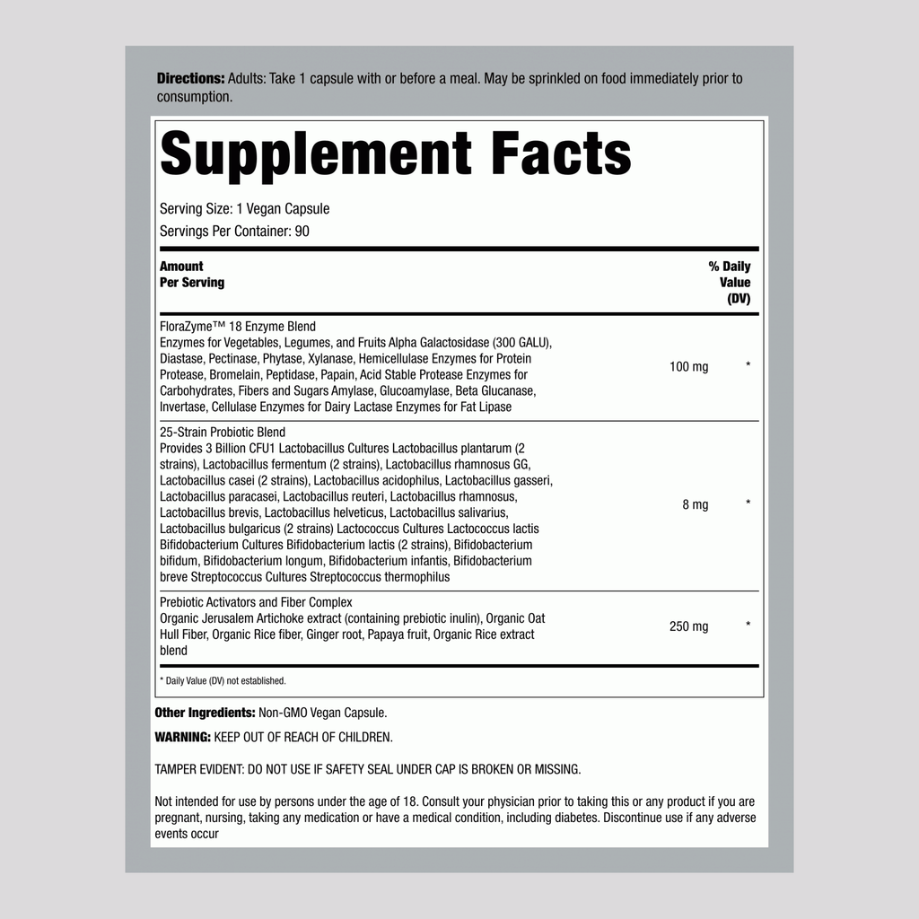 FloraZyme Digestive Enzymes Dr. Formulated, 90 Vegan Capsules