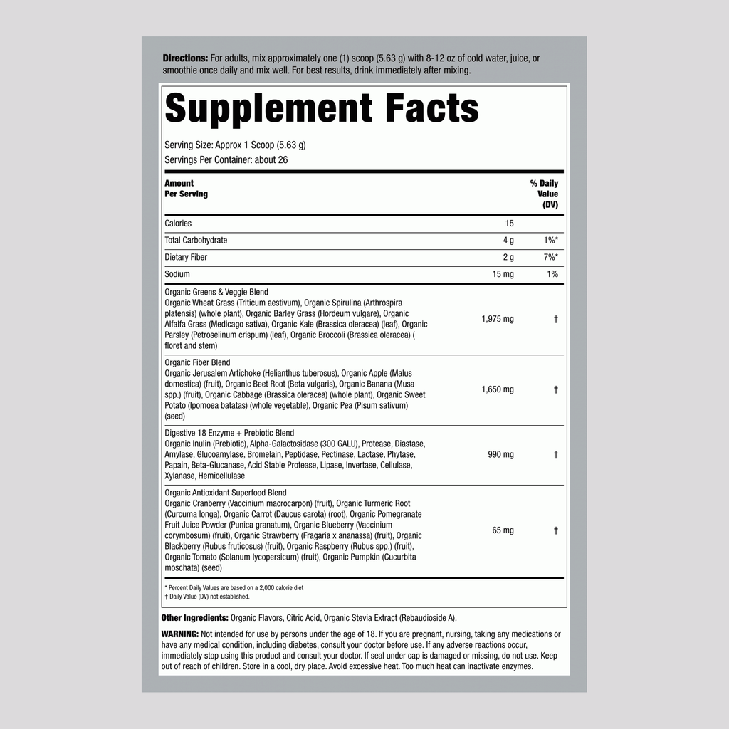 Greens Powder (Organic) (Kiwi Strawberry), 5.18 oz (147 g) Bottle