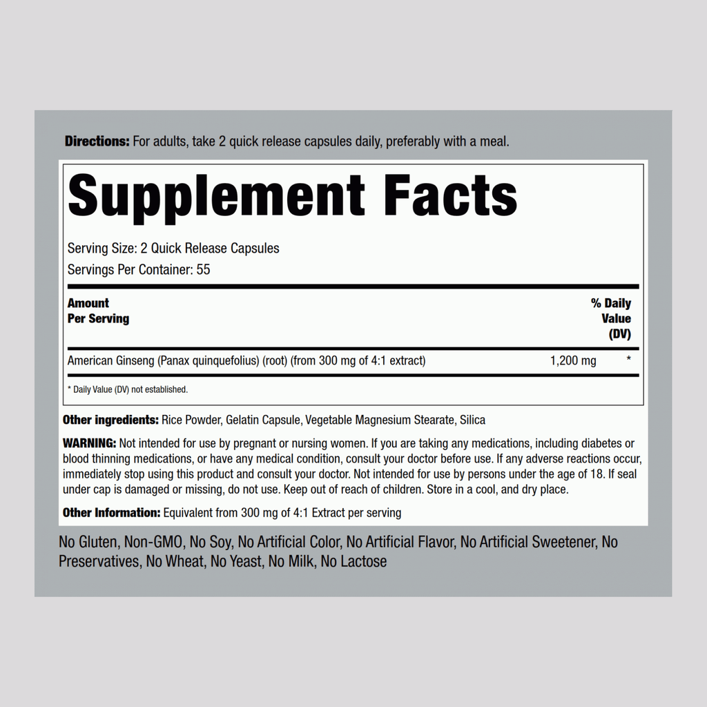 American Ginseng, 1200 mg (per serving), 110 Quick Release Capsules
