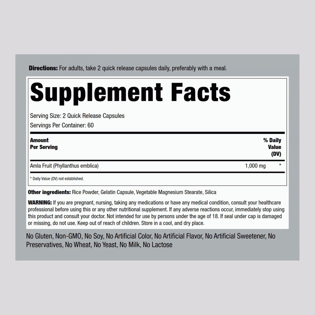 Amla Fruit (Indian Gooseberry), 1,000 mg (per serving), 120 Quick Release Capsules
