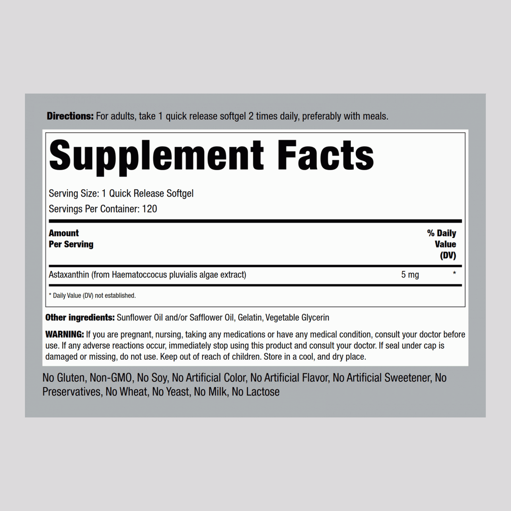 Astaxanthin, 5 mg, 120 Quick Release Softgels