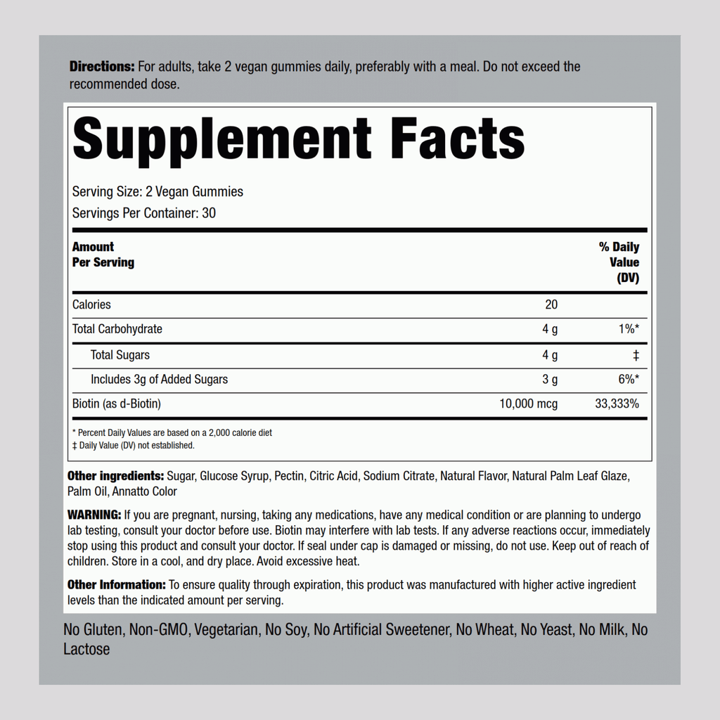 Biotin (Delicious Peach), 10,000 mcg (per serving), 60 Vegan Gummies