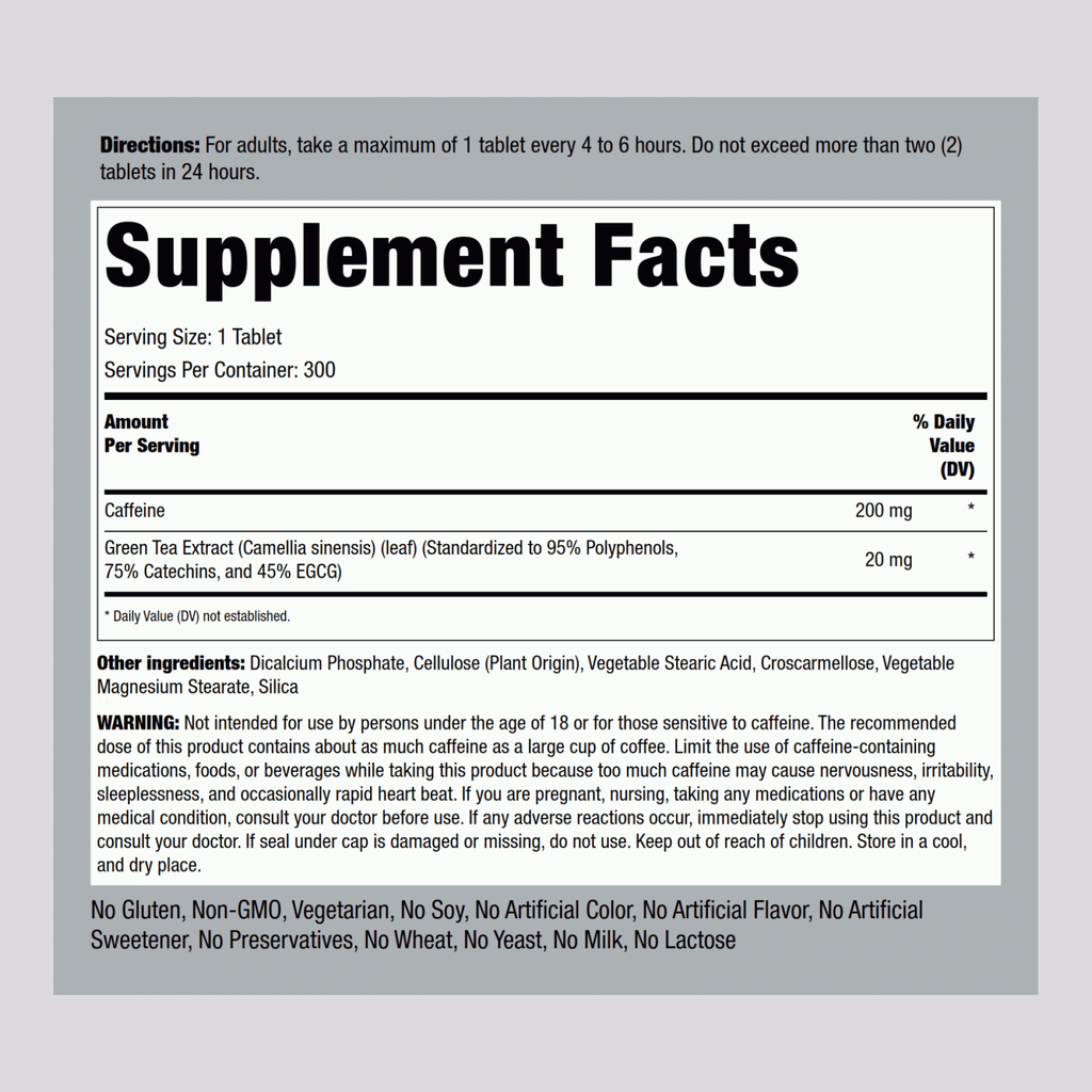 Caffeine Plus Green Tea, 220 mg, 300 Tablets