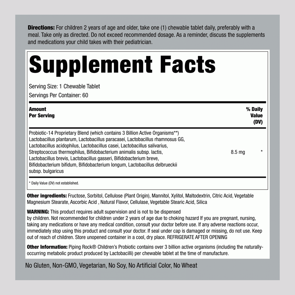 Children's Probiotic 14 Strains 3 Billion Organisms, 60 Chewable Tablets