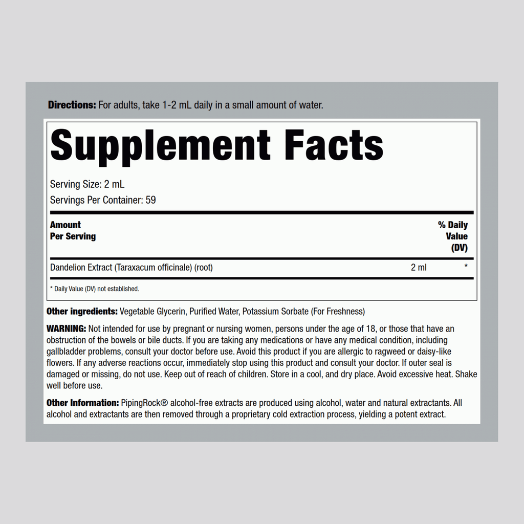 Dandelion Liquid Extract Alcohol Free, 4 fl oz (118 mL) Dropper Bottle