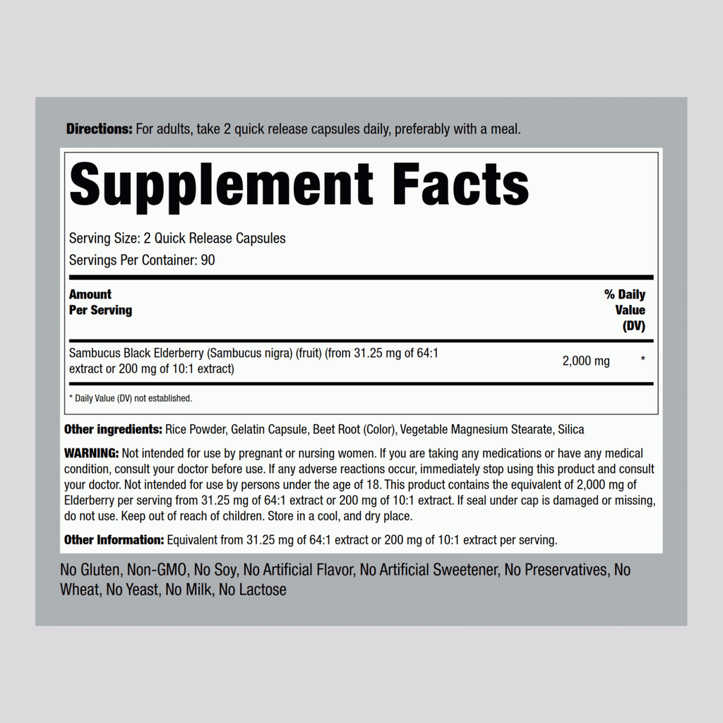 Elderberry Sambucus, 2000 mg (per serving), 180 Quick Release Capsules