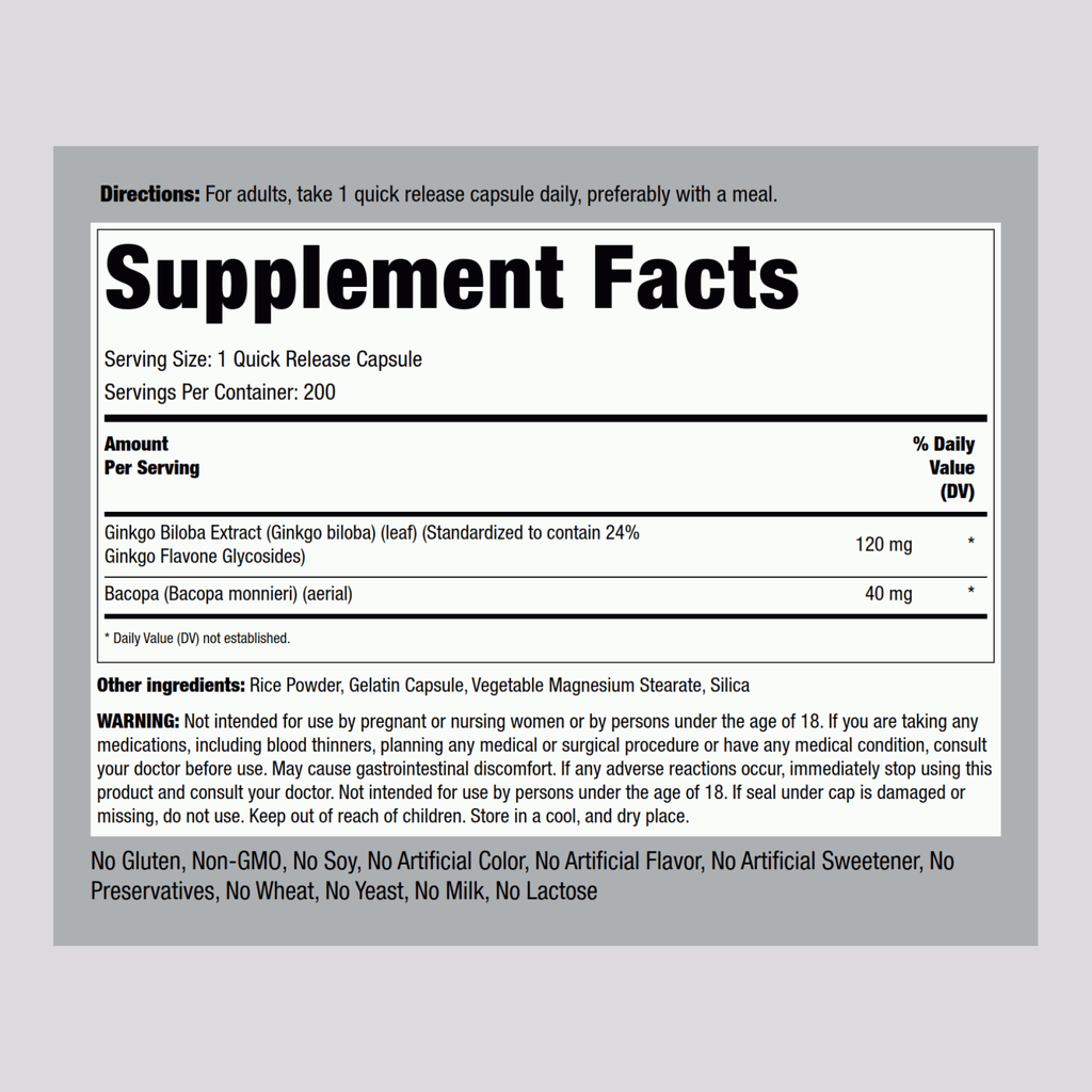 Ginkgo Biloba Standardized Extract, 120 mg, 200 Quick Release Capsules