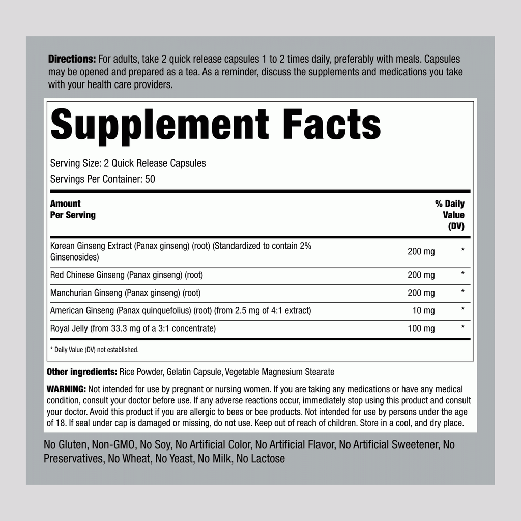 Super Ginseng Complex Plus Royal Jelly, 100 Quick Release Capsules