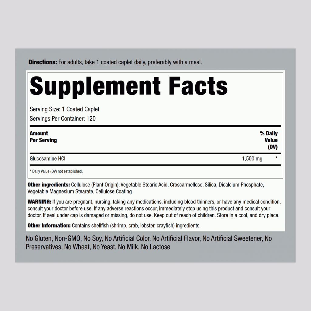 Mega Glucosamine HCI, 1500 mg, 120 Coated Caplets