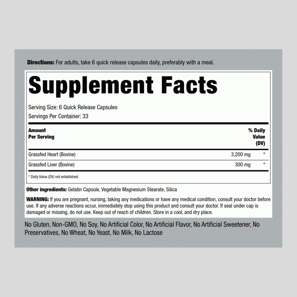 Grass Fed Beef Heart, 3200 mg (per serving), 200 Quick Release Capsules