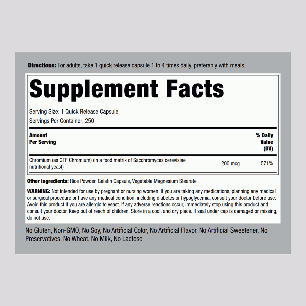 GTF Chromium, 200 mcg, 250 Quick Release Capsules