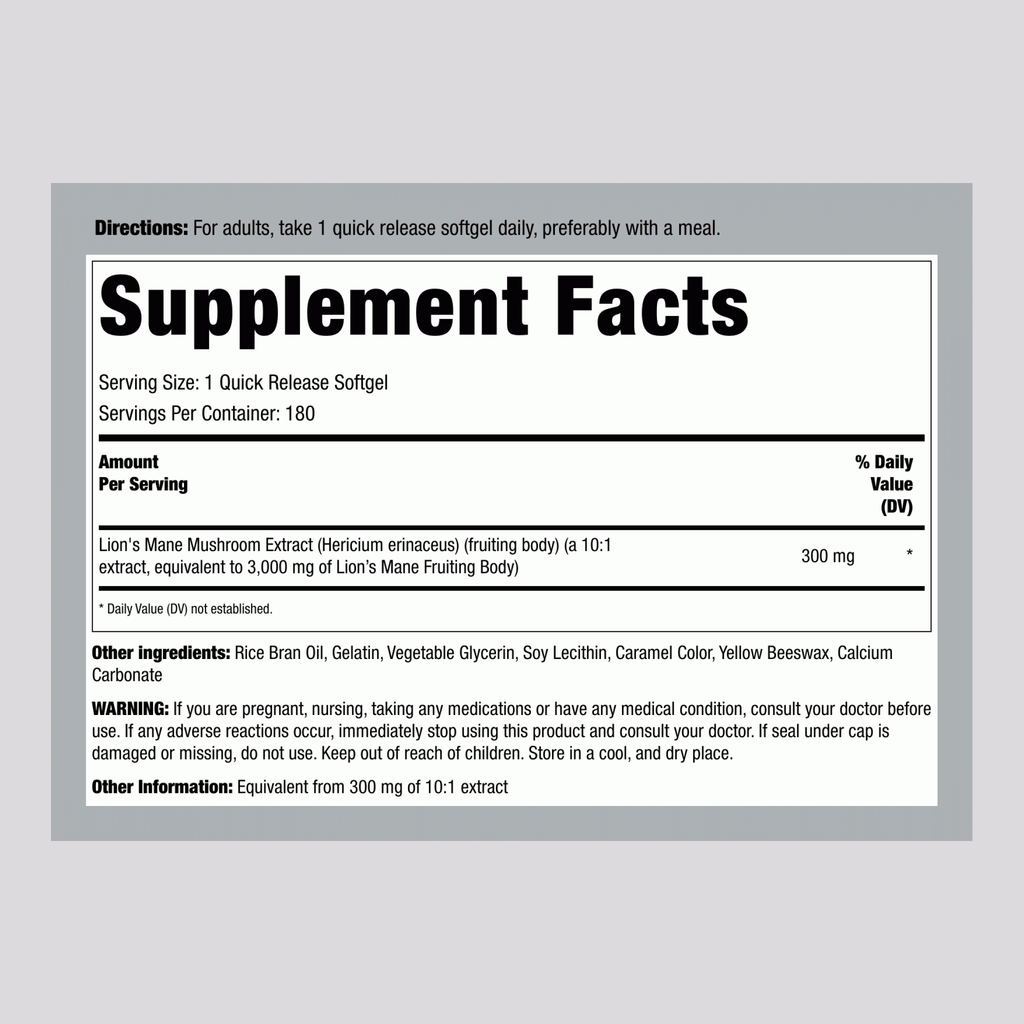 Lion's Mane Mushroom, 3000 mg (per serving), 180 Quick Release Softgels