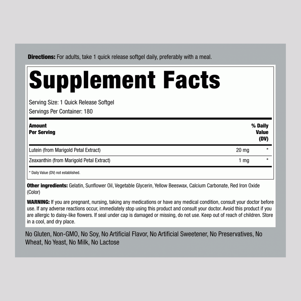 Lutein + Zeaxanthin, 20 mg, 180 Quick Release Softgels