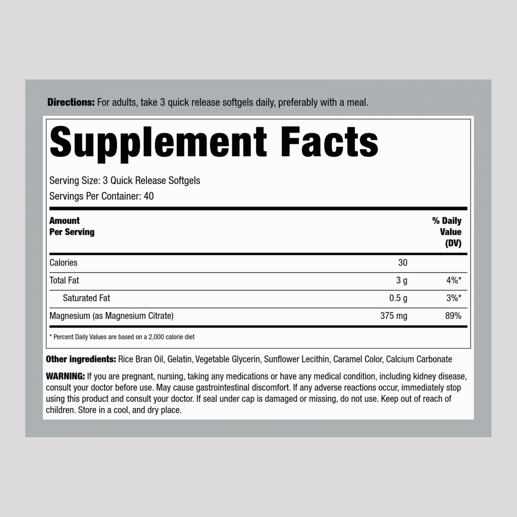 Magnesium Citrate, 375 mg (per serving), 120 Quick Release Softgels