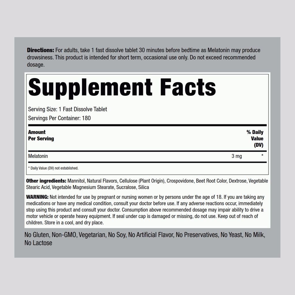 Melatonin (Natural Berry), 3 mg, 180 Fast Dissolve Tablets