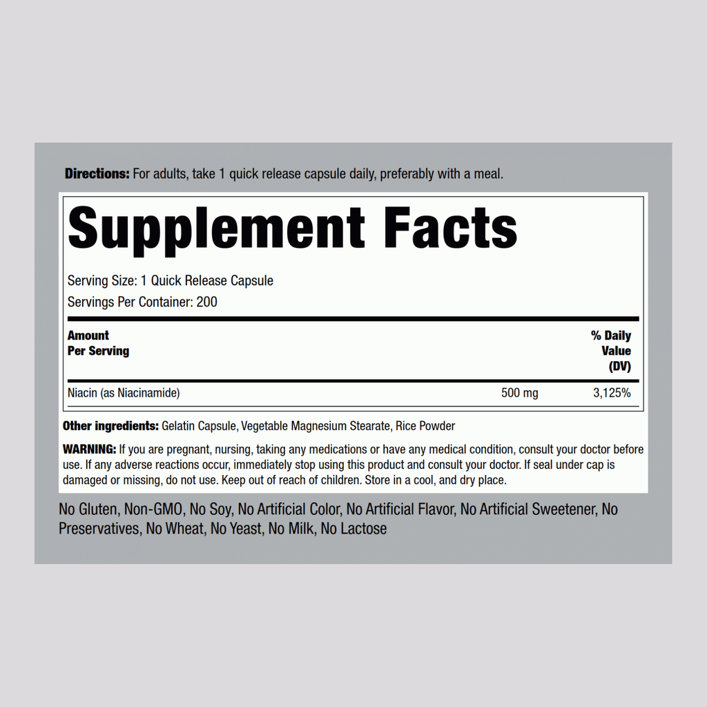 Niacinamide B-3, 500 mg, 200 Quick Release Capsules