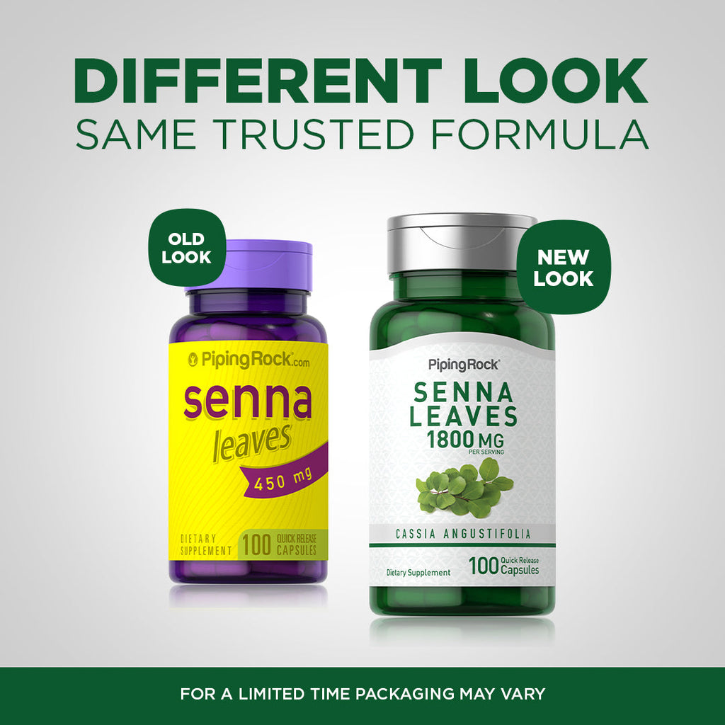 Senna Leaves, 1800 mg (per serving), 100 Quick Release Capsules