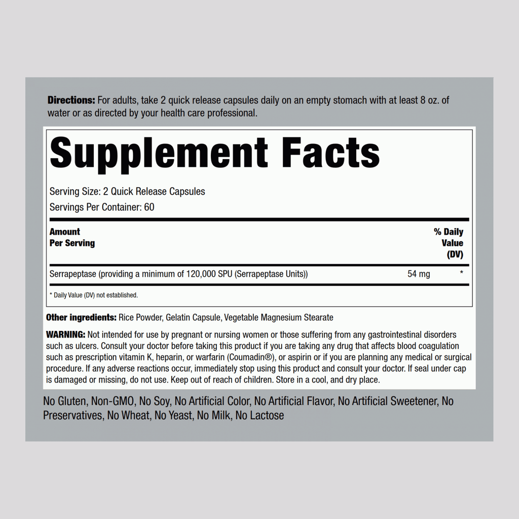 Serrapeptase, 120,000 SPU, 120 Quick Release Capsules