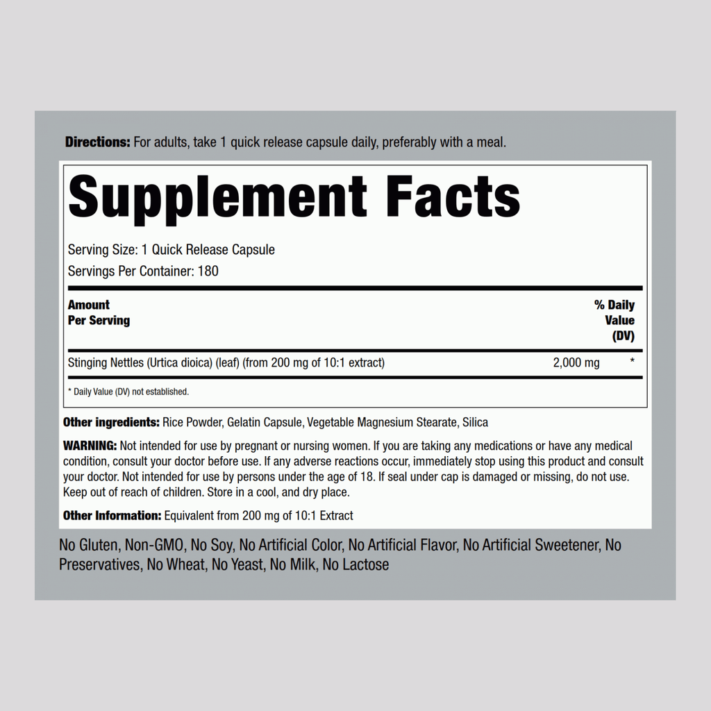 Stinging Nettles, 2000 mg, 180 Quick Release Capsules