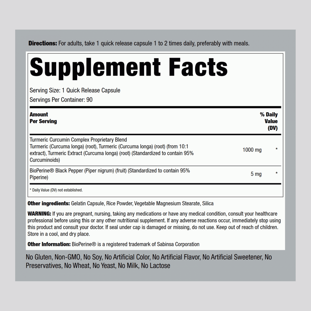 Standardized Turmeric Curcumin Complex w/ Black Pepper, 1000 mg, 90 Quick Release Capsules