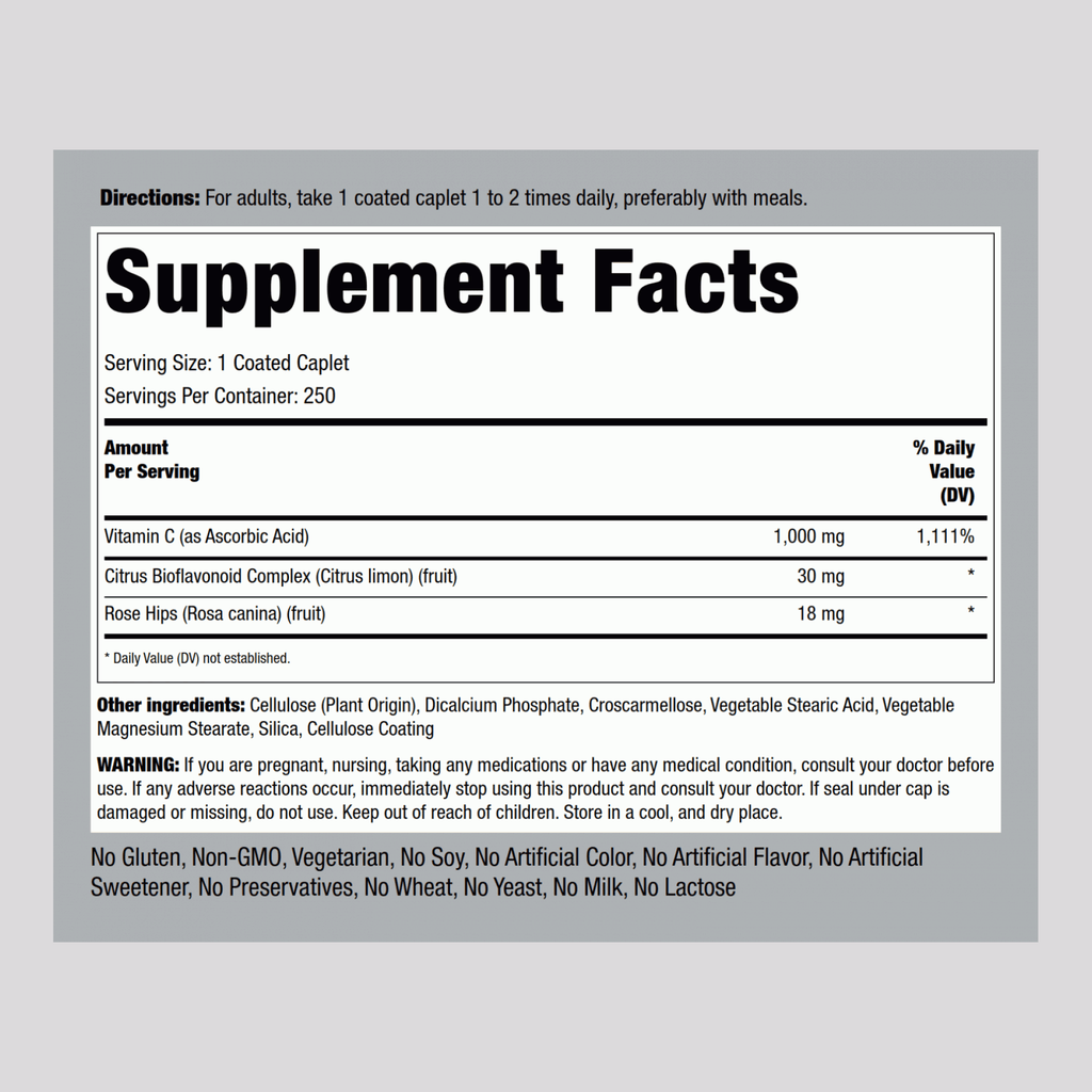 Vitamin C 1000 mg with Bioflavonoids & Rose Hips, 250 Coated Caplets