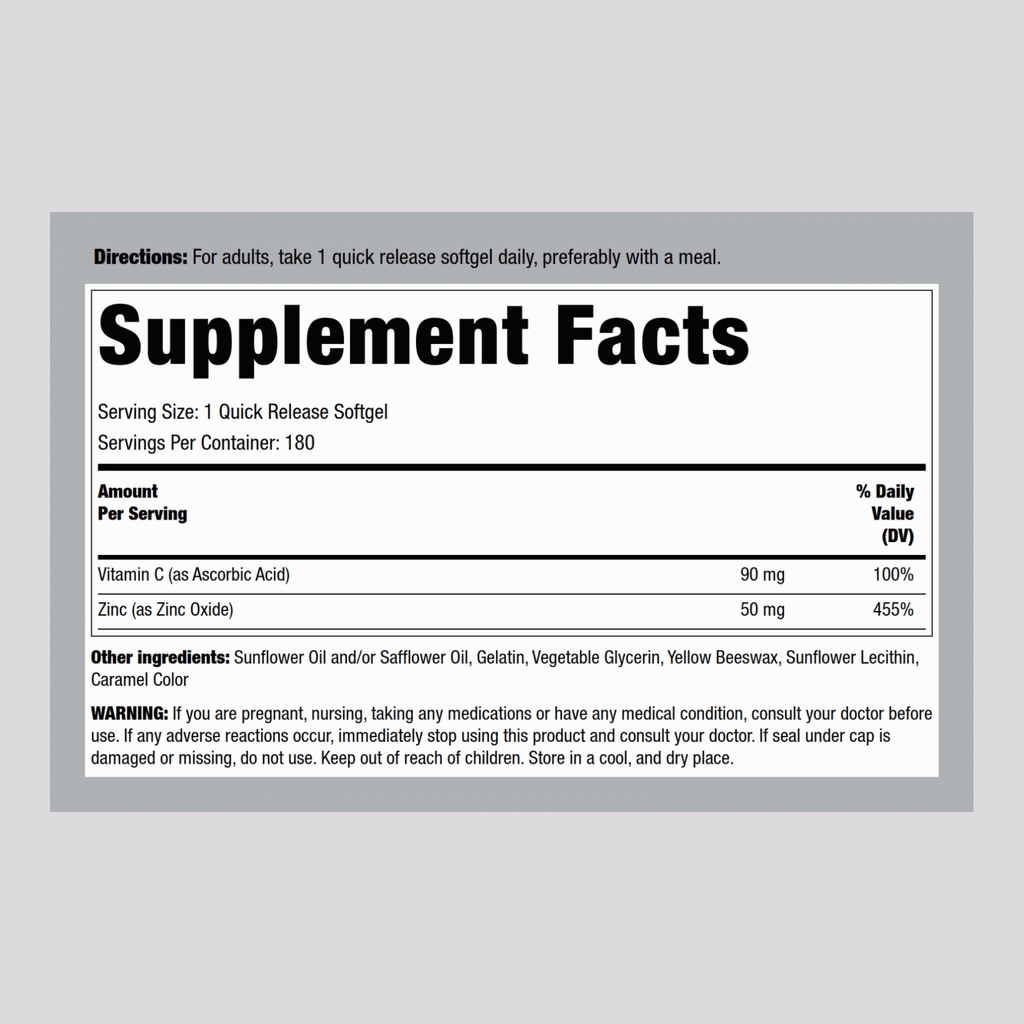 Absorbable Vitamin C Plus Zinc, 180 Quick Release Softgels