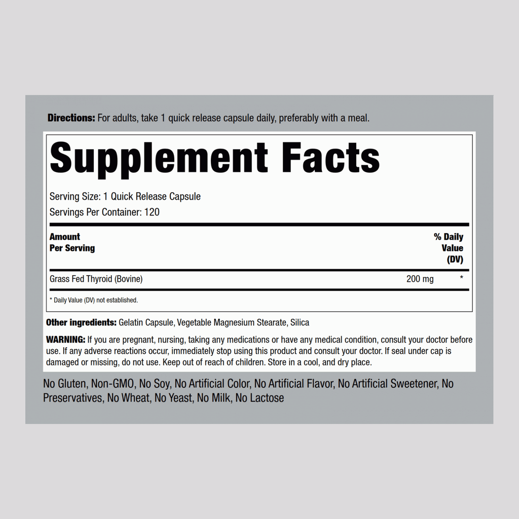 Grass Fed Beef Thyroid, 200 mg, 120 Quick Release Capsules