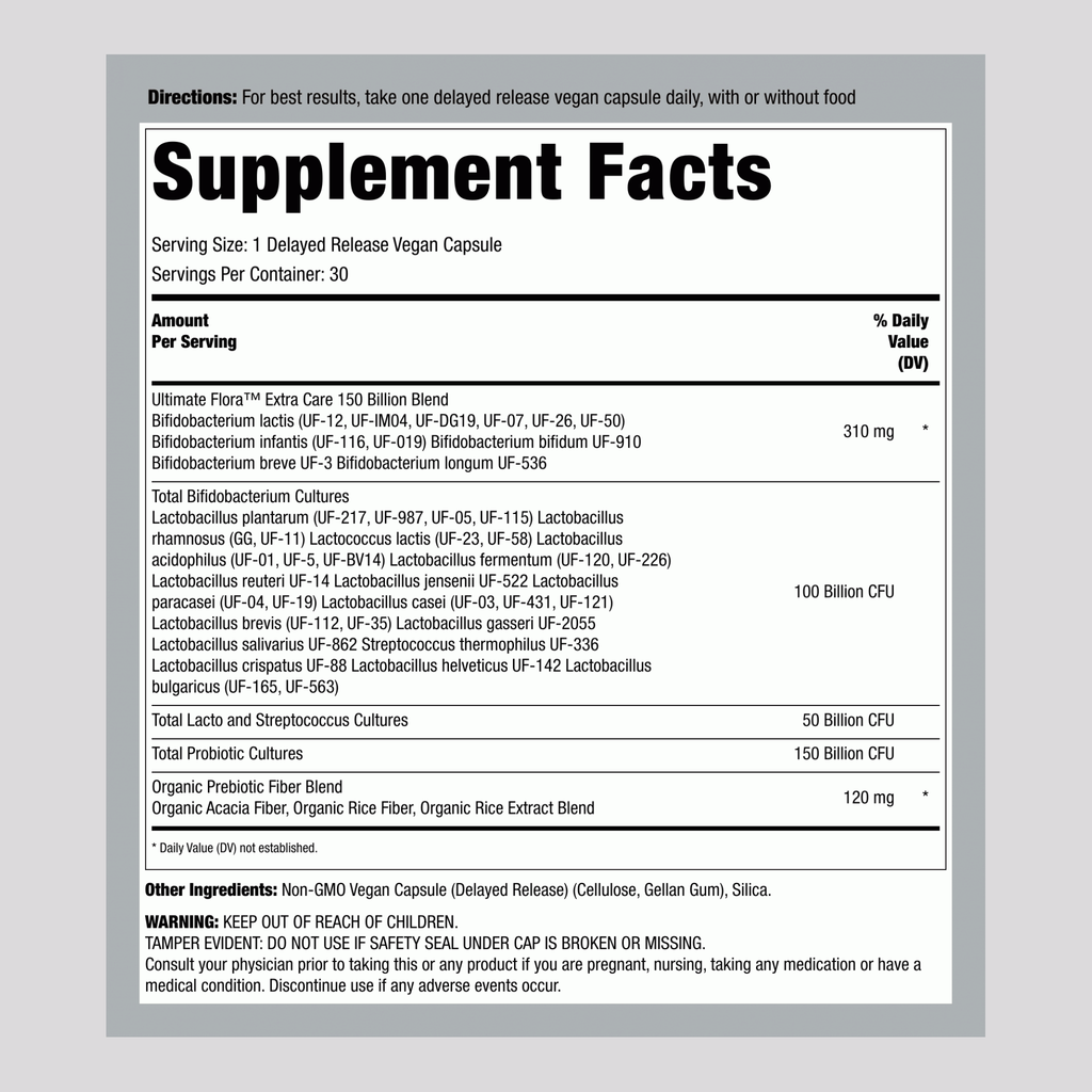 Ultimate Flora Extra Care Probiotic 150 Billion, 30 Delayed Release Vegan Caps