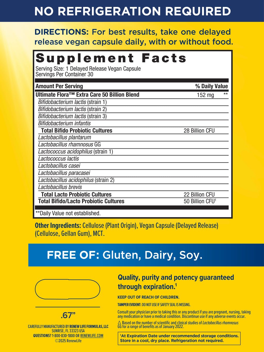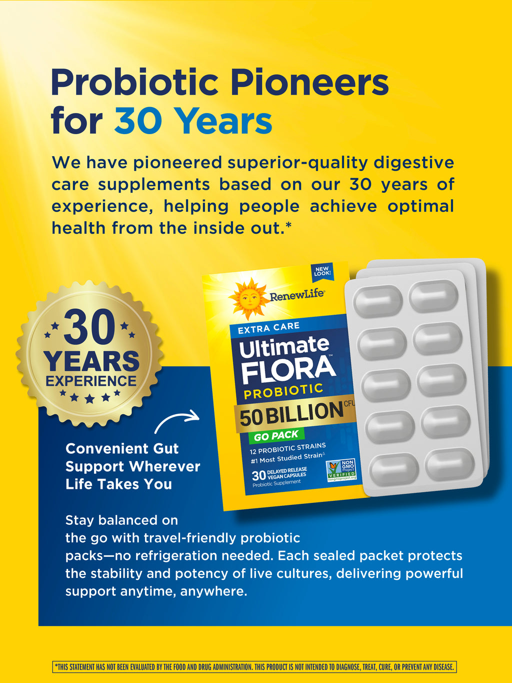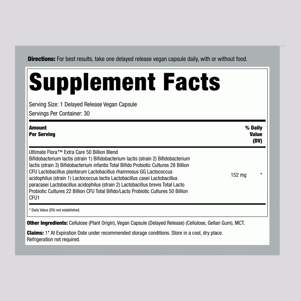 Ultimate Flora Extra Care Probiotic 50 Billion GO PACK, 30 Delayed Release Vegan Caps