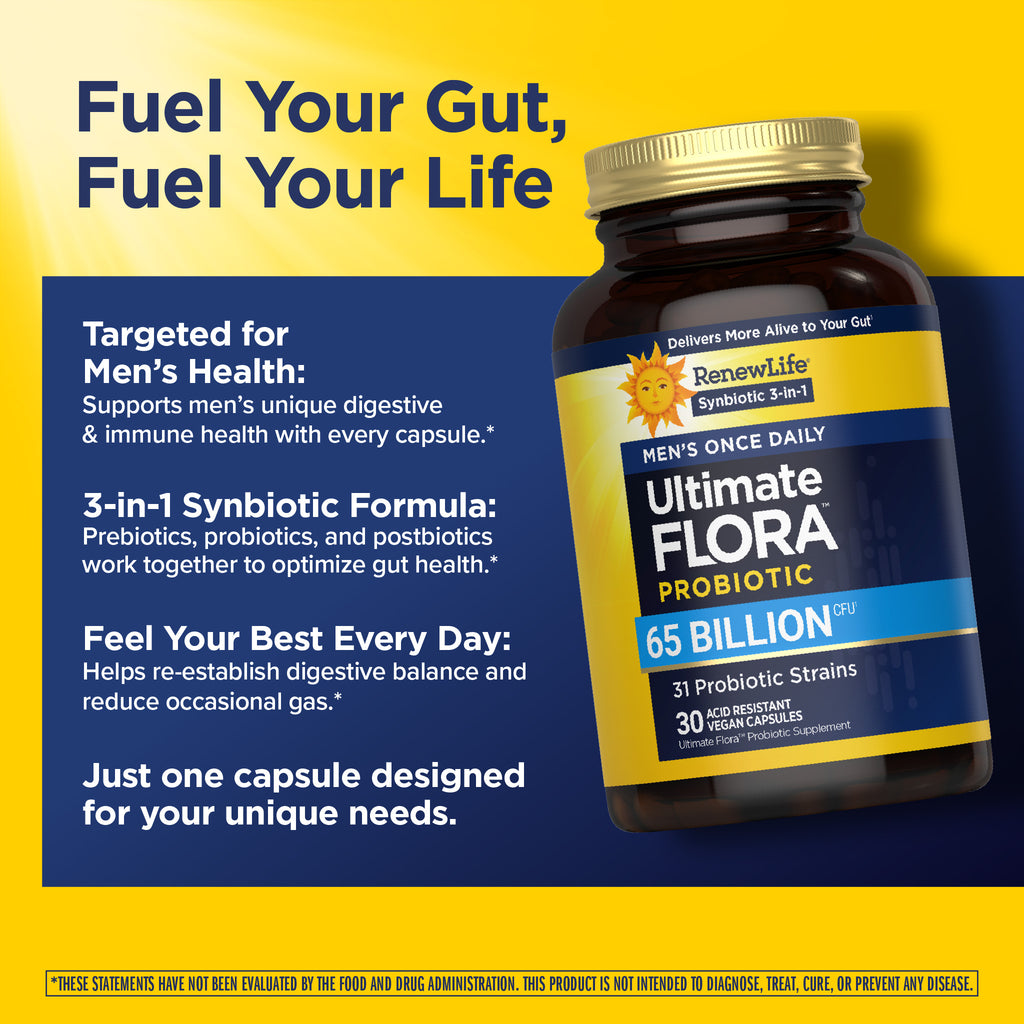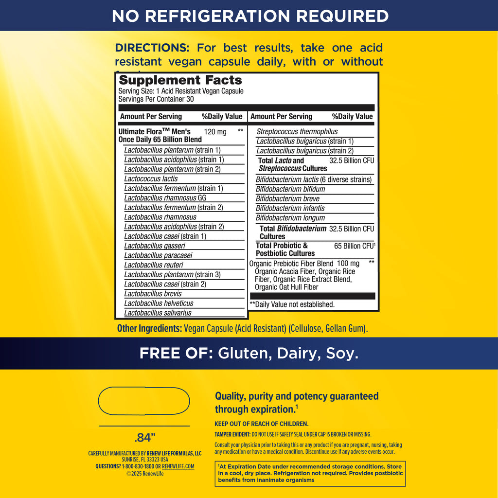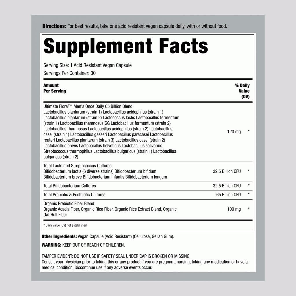 Ultimate Flora Men's Once Daily Probiotic 65 Billion, 30 Delayed Release Vegan Caps