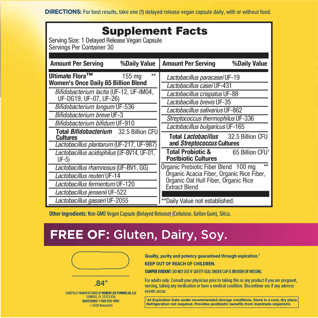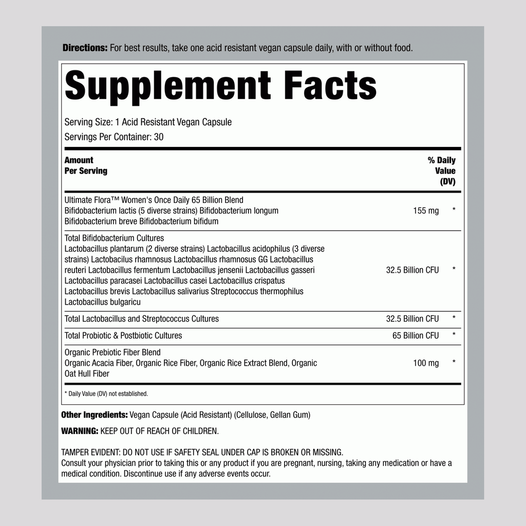 Ultimate Flora Women's Once Daily Probiotic 65 Billion, 30 Delayed Release Vegan Caps